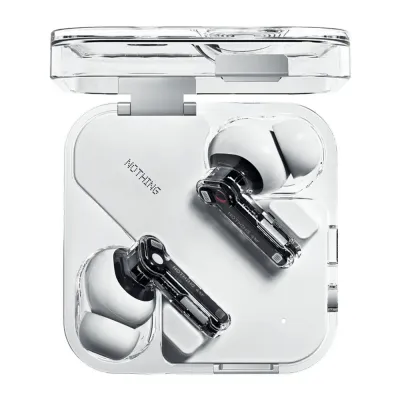 Наушники Nothing выделяются своим фирменным прозрачным корпусом, который позволяет увидеть внутренние детали и подчеркивает эстетику современных технологий. Зарядный кейс выполнен из прочного пластика, устойчивого к царапинам и механическим повреждениям, и защищен от воды и пыли по стандарту IP54.