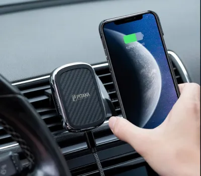 Держатель магнитный Pitaka New Magmount Qi (вентиляция) чёрная/black
