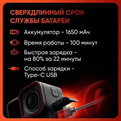 - Длительное время работы: До 100 минут записи на одном заряде.