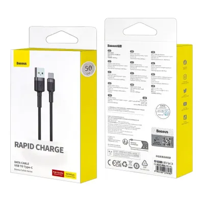 Кабель USB - Type-C Baseus Cafule длиной 0.5 метра представляет собой надежное решение для быстрой зарядки и передачи данных с мобильными устройствами. Выполненный в стильном черно-сером цвете, этот кабель станет отличным аксессуаром для вашего смартфона, планшета или другого устройства с разъемом Type-C.