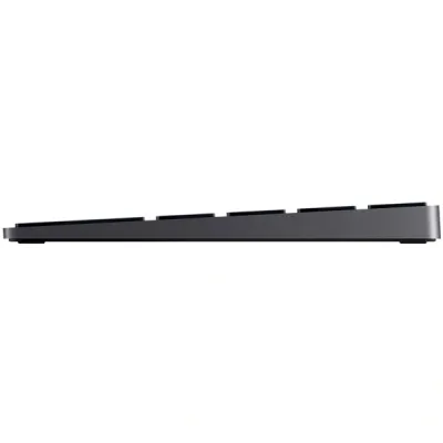 Представлена клавиатура в серебристом и тёмно-сером цвете. Выглядит невероятно стильно. Тонкая и лёгкая, она выполнена из практичных материалов: алюминия и пластика. Весит всего 400 грамм.