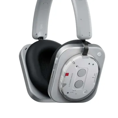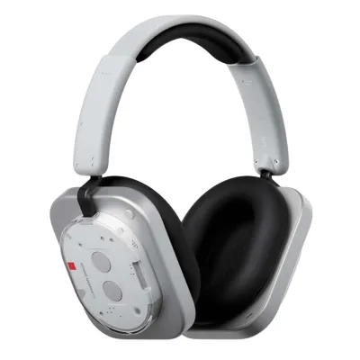 Стиль Nothing узнаваем: прозрачные вставки показывают внутренние элементы, корпус выполнен из комбинации пластика и металла, амбушюры — из пены с эффектом памяти. По заявлению производителя, конструкция прошла более 50 тестов надёжности (падения, пот, высокие температуры). Вес — 329 г, регулируемое оголовье и анатомическая форма амбушюров рассчитаны на комфорт при длительном ношении.