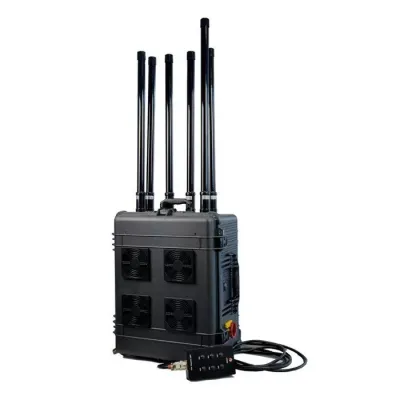 Мобильный профессиональный подавитель дронов «Гарпия CKJ-1708-500 W» - мощный автономный подавитель частот, на которых осуществляется управление квадрокоптерами. Всенаправленные антенны обеспечивают защиту воздушного пространства в большом радиусе. Сейчас большинство дронов оснащены устройствами передачи видеоизображения и звука. «Гарпия CKJ-1708-450W» не только прерывает связь беспилотника с пультом управления, но и блокирует частоты, отвечающие за дистанционную передачу информации.