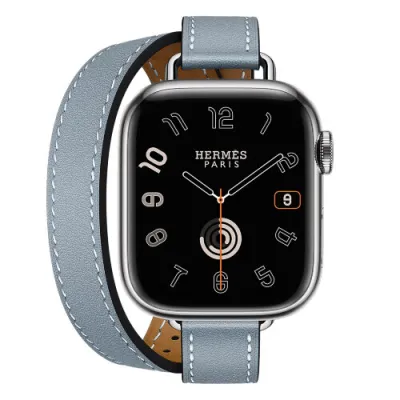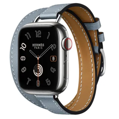 Смарт-часы Apple Watch S10 Hermes - браслет Double Tour Hapi Attelage (Голубой | Bleu Lin)