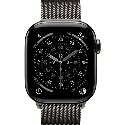 Apple Watch Series 11 Milanese Loop, заключённые в элегантный титановый корпус, задают новые стандарты прочности и стиля. Они доступны в размерах 46 мм (с дисплеем 416×496 пикселей) и 42 мм (с экраном 374×446 пикселей), обеспечивая идеальную посадку на любом запястье. Благодаря лёгкости титана (43,1 г для 46 мм и 34,6 г для 42 мм), часы ощущаются невесомыми. Сапфировое стекло гарантирует исключительную устойчивость к царапинам, а изысканный металлический браслет не только добавляет шарма, но и легко регулируется. Apple демонстрирует приверженность принципам устойчивого развития: до 40% переработанных материалов используются в корпусе и аккумуляторе, а производство полностью обеспечивается возобновляемыми источниками энергии.
