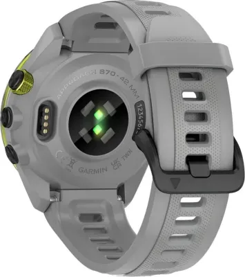 Умные часы Garmin Approach S70 — это отличный выбор для тех, кто активно занимается спортом и стремится быть в курсе своих показателей здоровья. Эти смарт-часы привлекают внимание своим изысканным дизайном: стильный чёрный керамический безель и элегантный порошково-серый силиконовый ремешок делают их подходящими как для повседневной жизни, так и для занятий спортом.