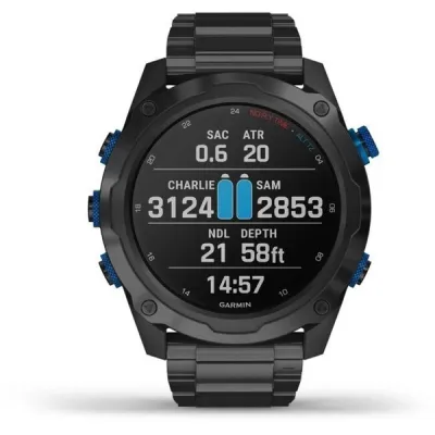 Контролируйте уровень газа и глубину с помощью усовершенствованного компьютера для дайвинга в виде часов, который оснащен мультиспортивными тренировками и интеллектуальными функциями